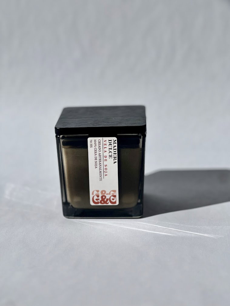 Vela de soja en vidrio cuadrado color fumé, diseñada para aportar una presencia elegante y atemporal. Su tapa de bambú negra con sello de silicona resguarda la fragancia y completa una estética cuidada en cada detalle.